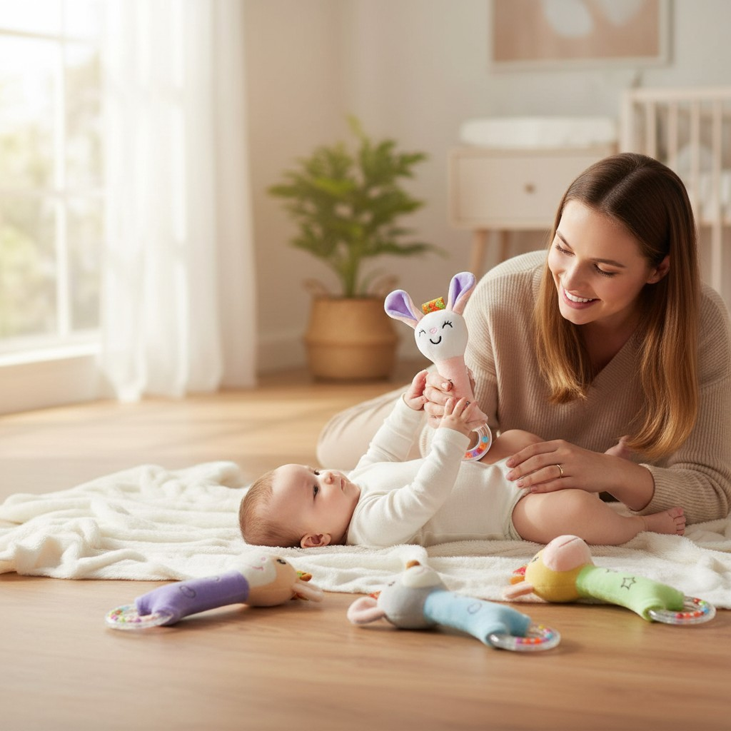 Perfect for playtime, gifting, or soothing your baby on the go, these delightful rattles are a must-have for every growing child.